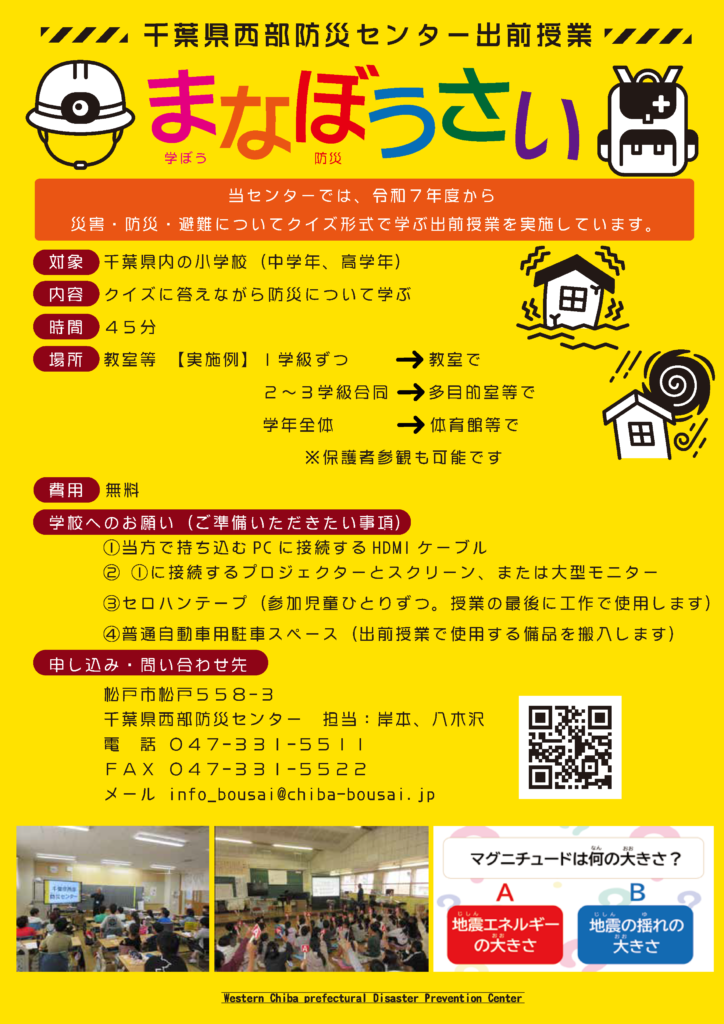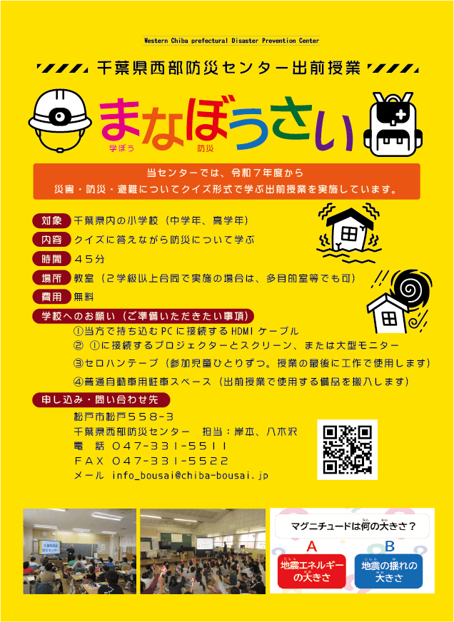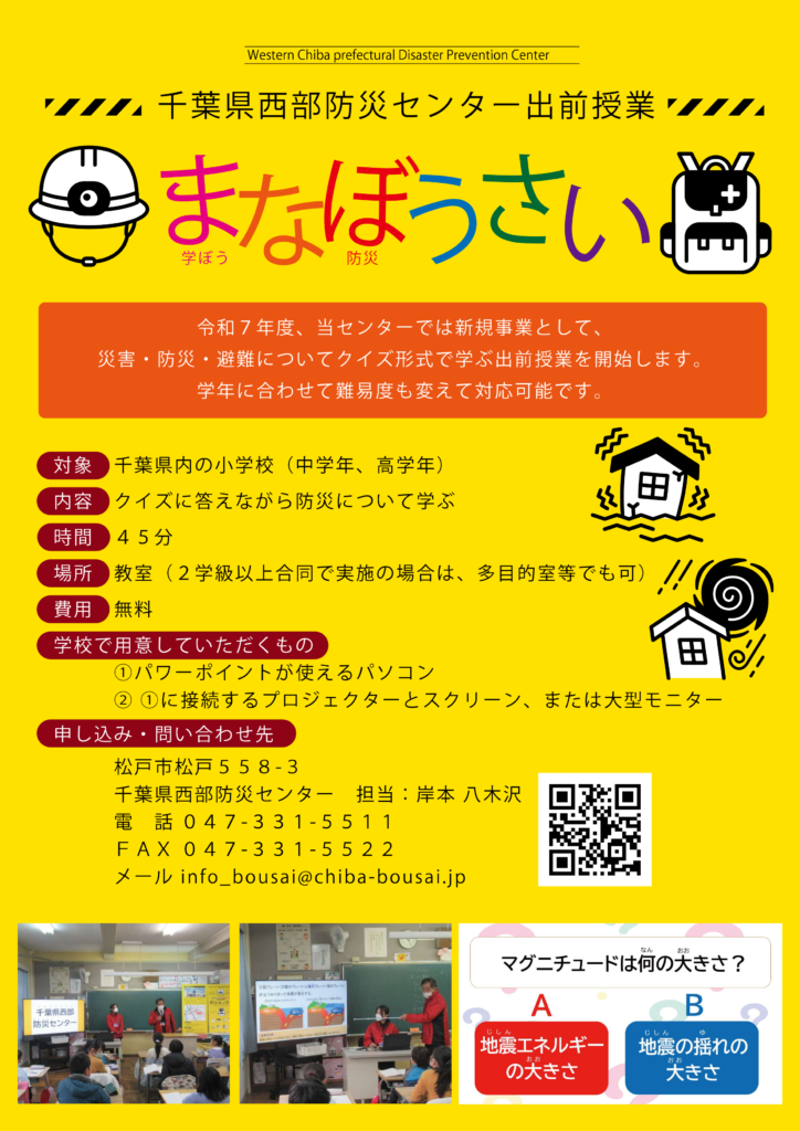 令和7年度から、当センターでは出前授業「まなぼうさい」を行っています。